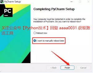 5.等待安装完成之后勾选上下面选项,不然电脑会重启,然后点击Finish,它会直接运行。