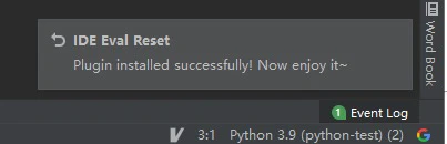 插件安装成功后,右下角会有如下提示,一定要重启PyCharm(很重要)、