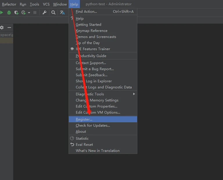 在IDEA界面点击 Help - > Register