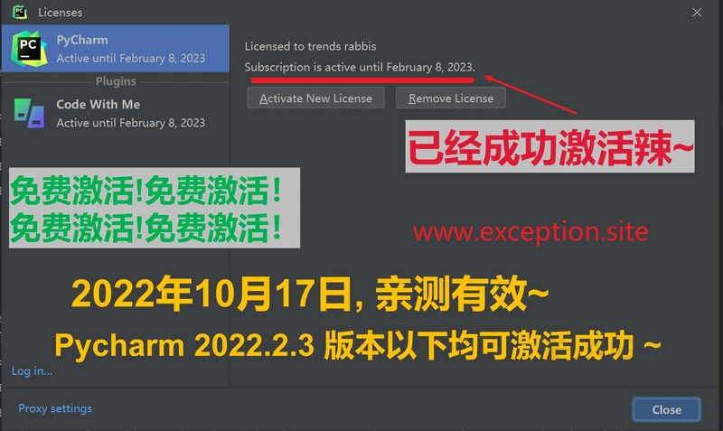 好在z大又更新了新的补丁,针对最新版本,这边笔者亲测可行,仅以下文记录本人 Pycharm 2022.2.3 版本的激活激活成功教程的全过程,步骤非常详细,跟着图文来就行~