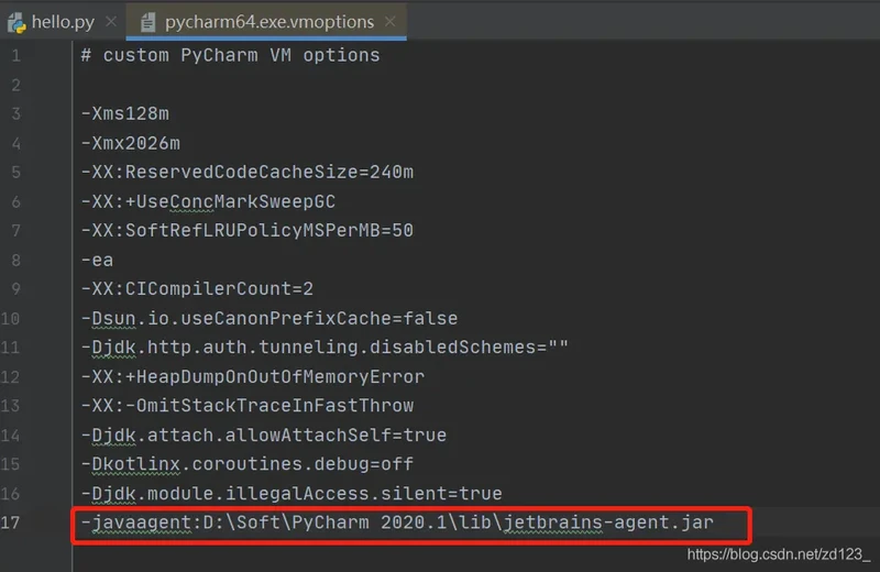 -javaagent:本地路径PyCharm2020.1libjetbrains-agent.jar