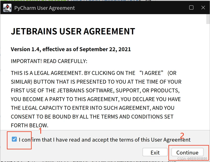 勾选后点击继续: