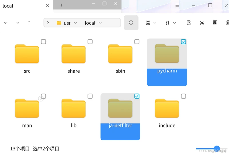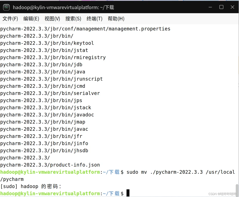 将Pycharm安装包解压缩,把解压缩后的文件放到/usr/local目录下,并且重命名: