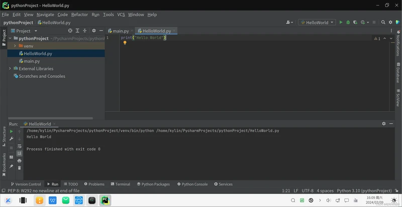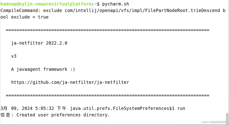 使用命令pycharm.sh启动pycharm: