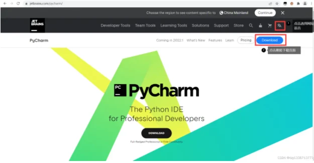 右上角可以选择网站的语言,点击后选择简体中文;点击蓝色的下载按钮,跳转至下载页面
