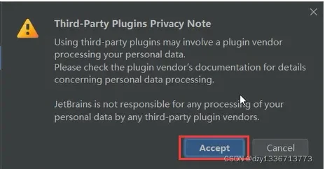 第一次下载插件会弹出“Third-Party Plugins Privacy Note (第三方插件隐私说明)"提示,选择 Accept 接受即可