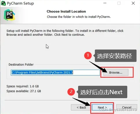 点击 Browse… 选择安装路径,选好后点击 Next 进入下一步