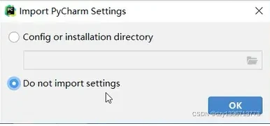 之后打开 pycharm,第一次会问是否导入 pycharm 设置,选择下面的不导入,然后点击OK