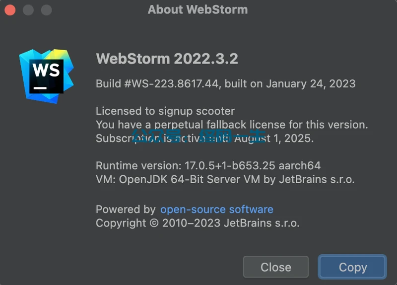 本教程以官网最新版本WebStorm2022.3.2作为测试版本,Mac下亲自测试,Window用户一样可以激活。