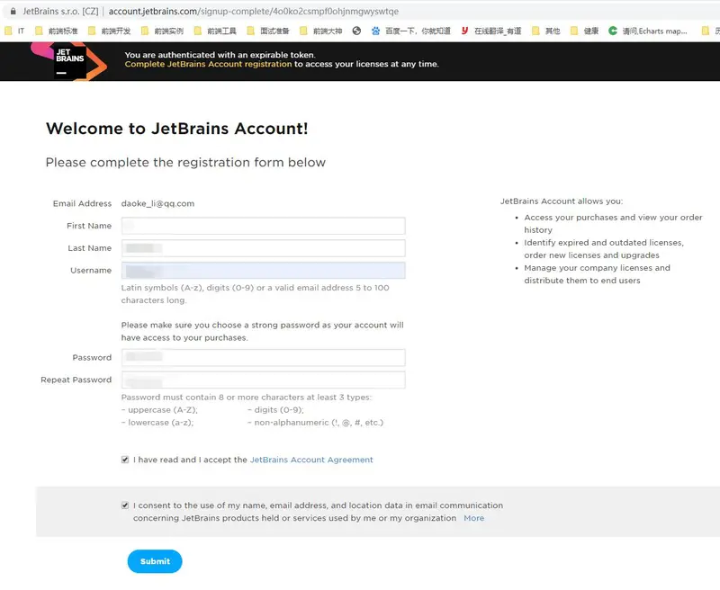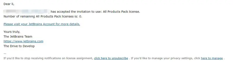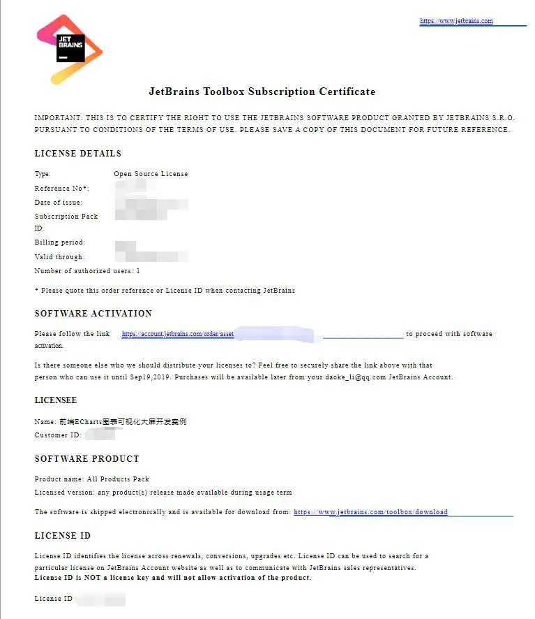 前两天升级webstorm后序列号失效,想起来以前看到过开源开发者可以申请免费许可,就尝试了一下。我是9月10号中午申请的,9月12号晚上收到接受申请的回复邮件,然后一系列操作后免费使用上了,在这里把收到邮件后的流程给大家简单贴一下,希望有开源项目申请的小伙伴们尝试一下——JetBrains这方面做得不错!