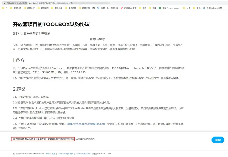 打开协议,认证阅读,这里我用谷歌翻译成了中文