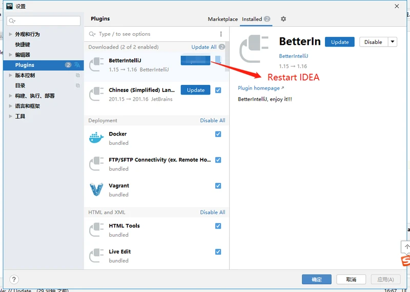 如果没有出现 Restart IDEA 再操作上面步骤一次。或者直接重启