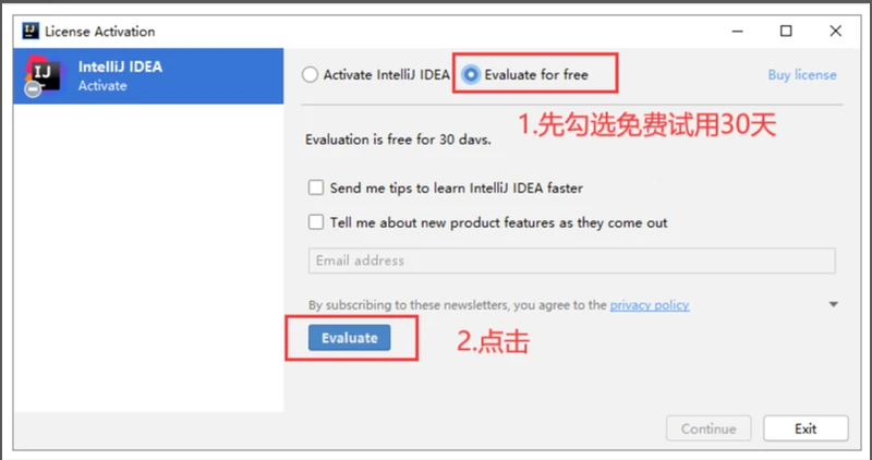1、先勾选 Evaluate for free, 点击 Evaluate: