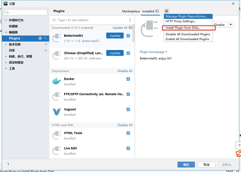 3、 安装激活成功教程插件---插件中心 File -> Settings -> Install Plugin From Disk,如下图所示