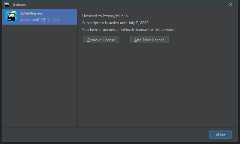 点击是,重启webstorm即可,然后验证是否激活成功。