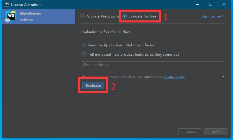 配置助手会提示您,需要使用哪种激活方式,这里我们选择默认的Activation Code,通过注册码来激活,点击为webstorm安装: