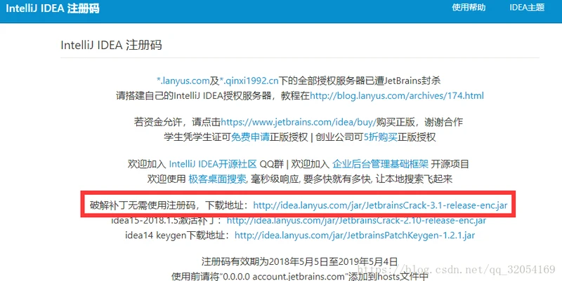 2.在http://idea.lanyus.com/找到激活成功教程补丁的下载地址